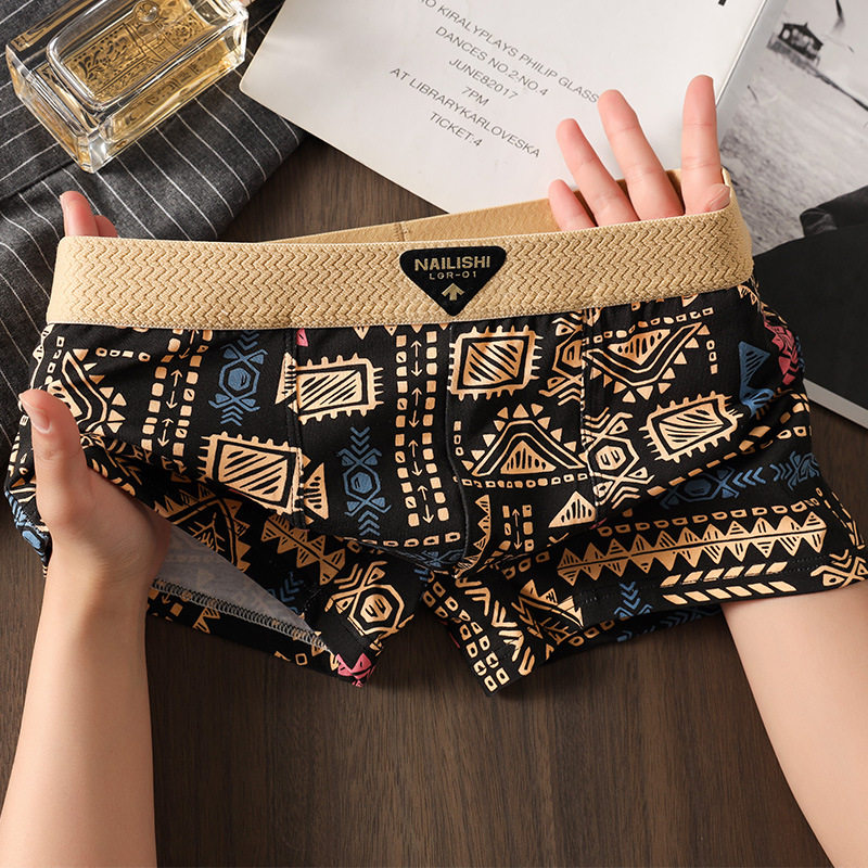 男士内裤舒适透气四角裤潮流美式复古民族风平角裤男生中腰短裤