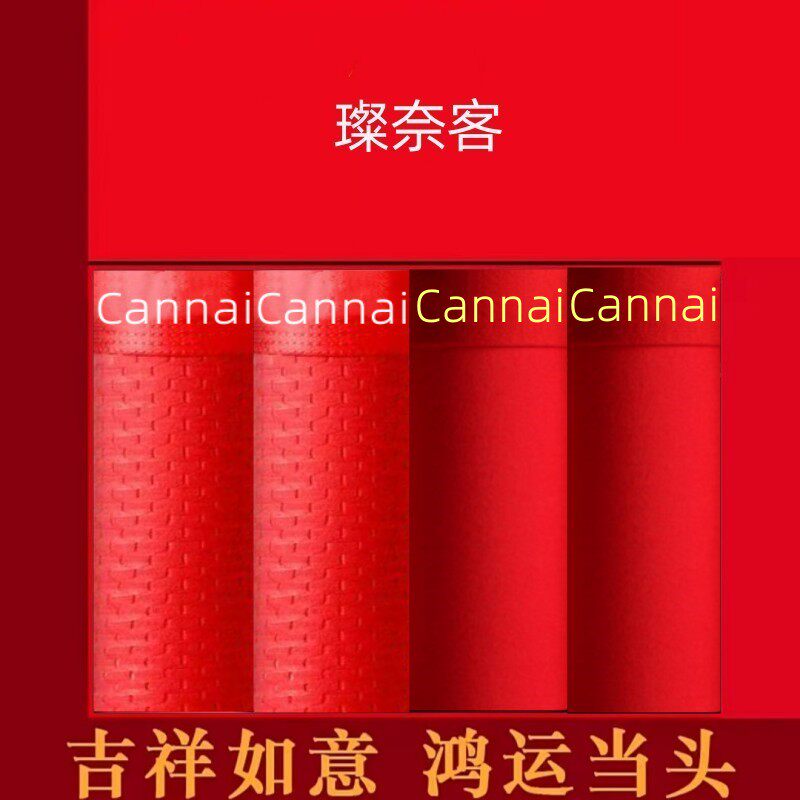 璨奈客正品男士内裤石墨烯裆部平角四角裤莫代尔冰丝纯棉本命年红