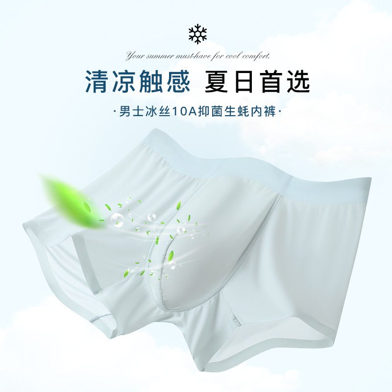丁贝果果男士冰丝加长平角内裤7A抑菌透气清爽降温男生运动四角裤