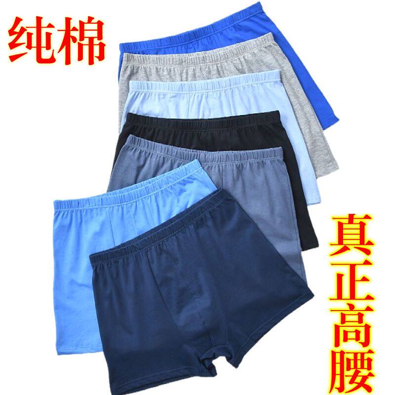 四条100%纯棉高腰男士内裤中老年平角裤全棉四角加肥大码爸爸短裤
