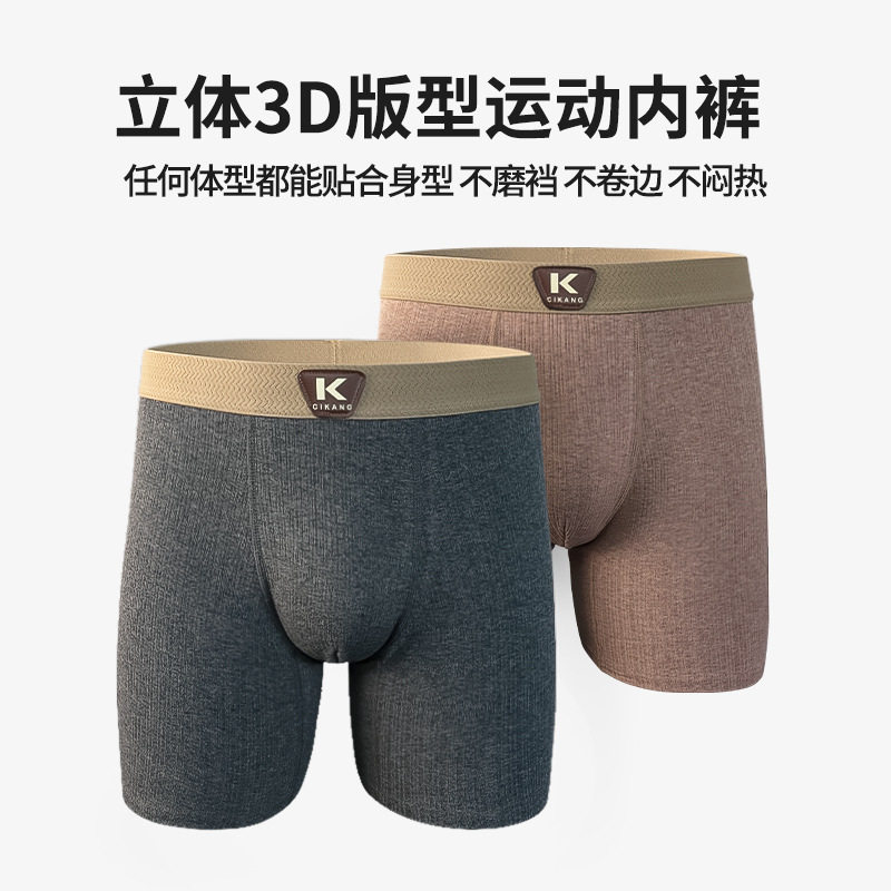 多条装运动健身男士内裤纹理棉质中腰亲肤四角裤加长裤腿防磨气质