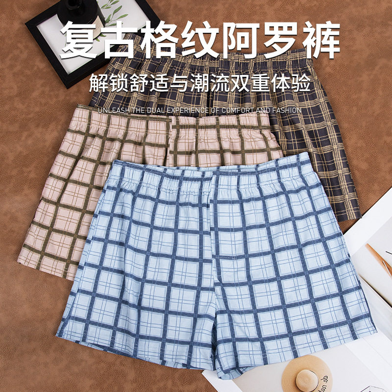 【一裤多穿】男士内裤阿罗裤棉格子休闲大码睡裤居家四角裤大裤衩