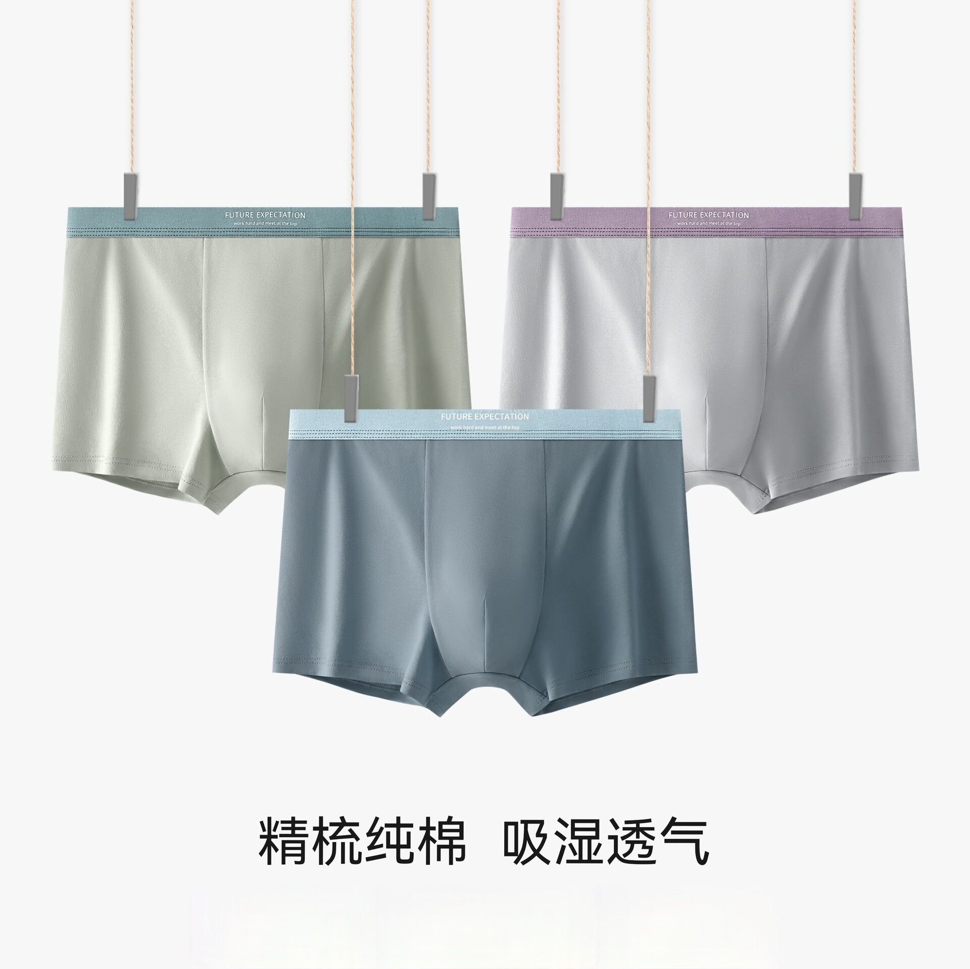 优质3条装棉男士内裤男款高档平角内裤潮流男生四角短裤衩