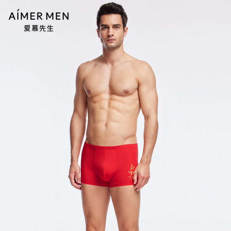 爱慕先生兔年如意生肖裤本命年红品系列男士舒适平角内裤NS23J051