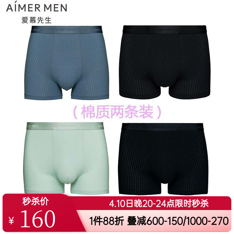 【2件包】爱慕先生正品男士款肌理棉内裤棉质透气舒适装腰平角裤