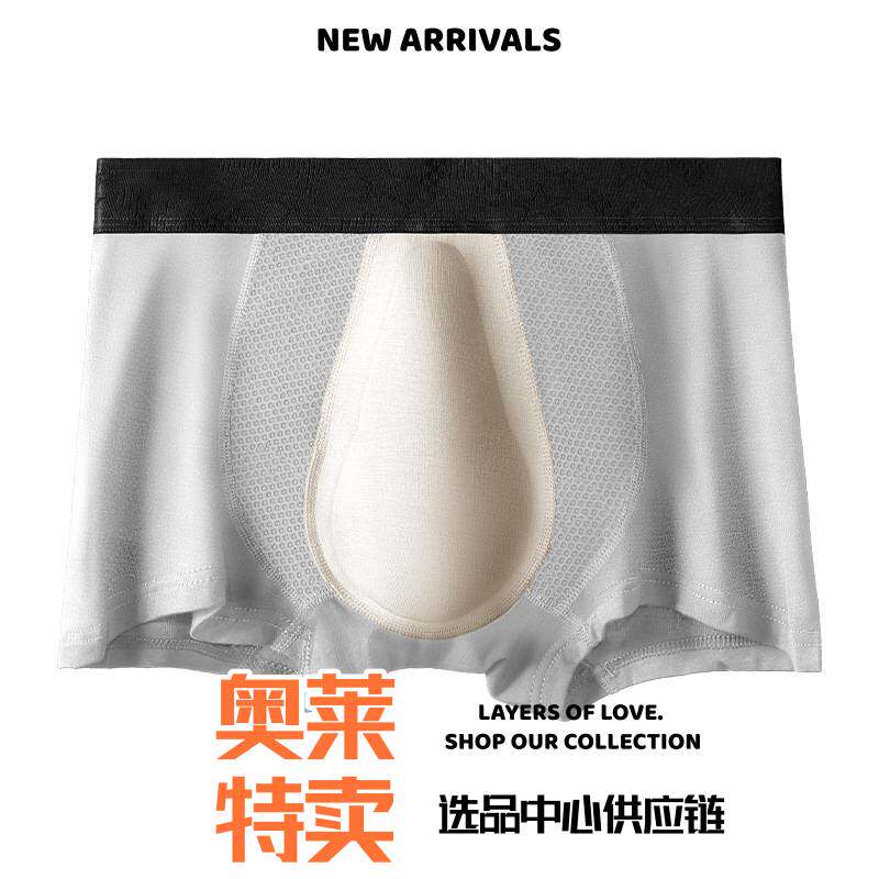 优质冰丝夏石墨烯抑菌平角大码四角无痕磁石中腰生男士内裤热销爆