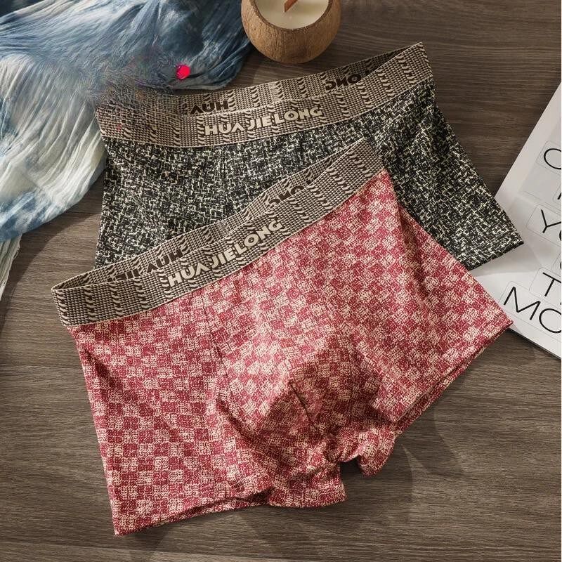 男款男士内裤男冰丝平角裤青少年短裤男式印花男生男式四角短裤头