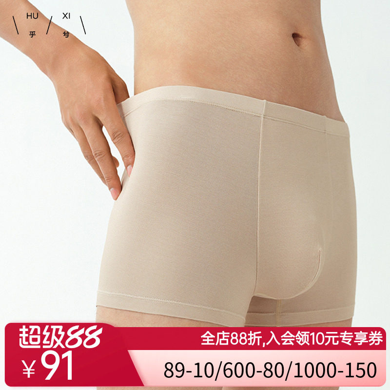 乎兮3条装男士平角裤50支优可丝5A抗菌中腰吸汗透气舒适四角内裤