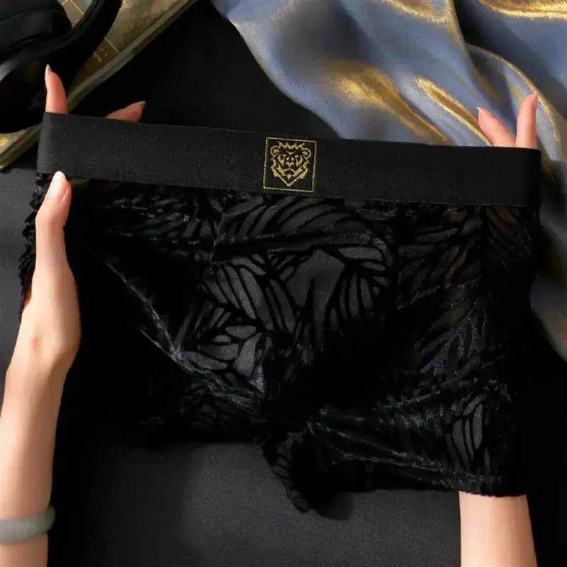 维度生活优品丝绒网纱男士平角内裤性感舒适透气底裤潮流大码短裤