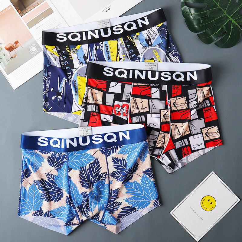 个性男士内裤男平角冰丝内裤男夏季透气裤衩潮流男生四角裤底裤头