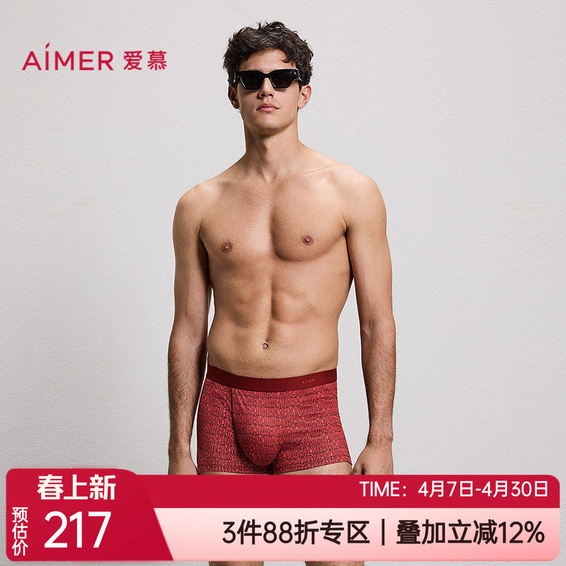 爱慕先生正品时尚提花莫代尔红色本命年男士装腰平角内裤NS23N102