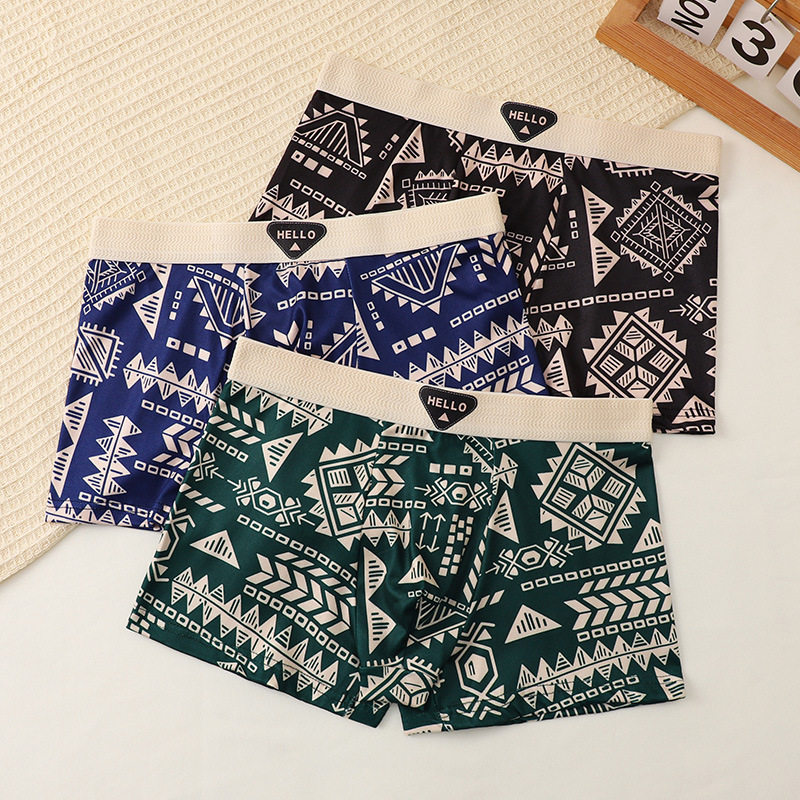 外单非棉加大码中腰民族风男士内裤速干透气平角美式四角裤短裤头