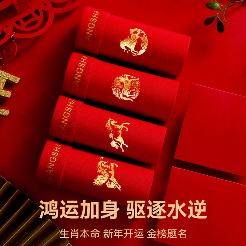 本命年红内裤男马年纯棉抗菌平角裤结婚大红色鸿运男生短裤衩