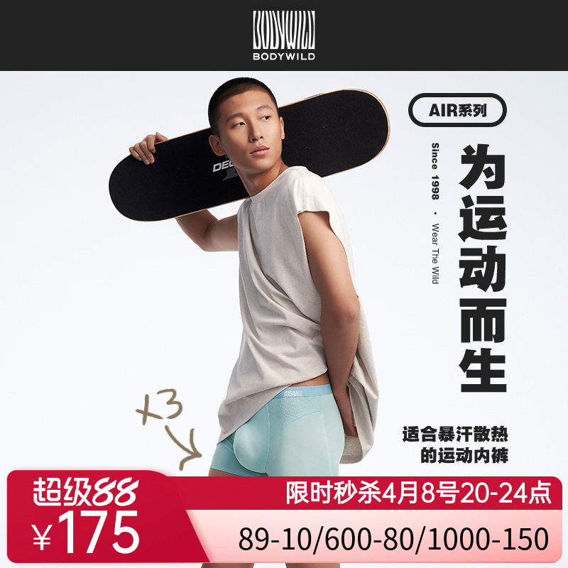 BODY WILD24春夏新款粘合打孔平角裤3件包男士内裤四角