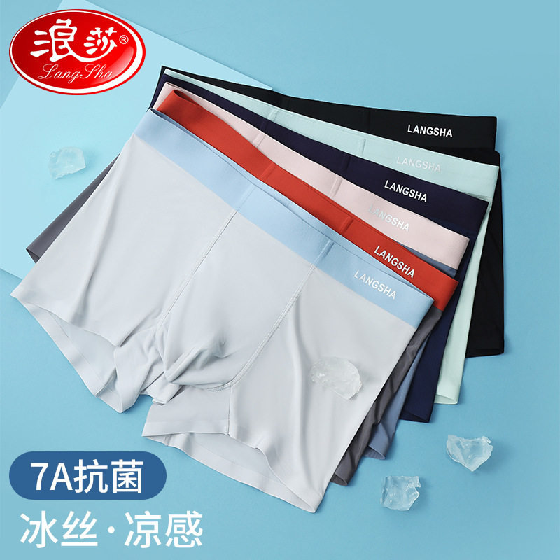 浪莎冰丝内裤男夏季薄款无痕平角裤抑菌裆运动男生四角裤短裤男士