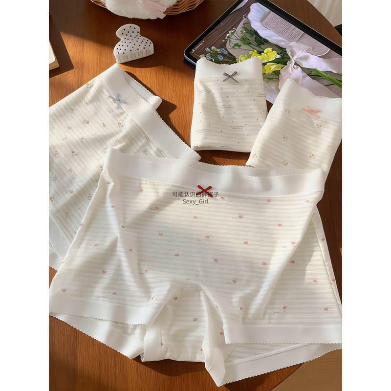 『4条装』女士冰丝无痕内裤夏季款亲肤透气凉感甜美风四角裤女生