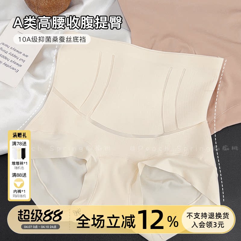「兰古茶寂」高腰收腹提臀A类无痕内裤女士加长桑蚕丝裆10A抑菌新