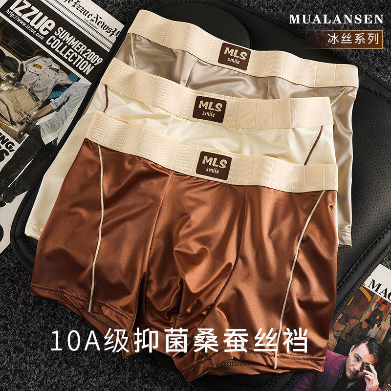 灵芝人参超薄冰丝男士内裤男内透气网孔无痕四角短裤桑蚕丝抑菌裆