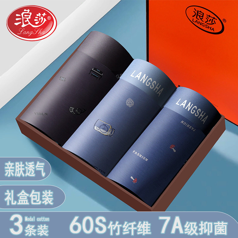 浪莎男士内裤抗菌底裆印花平角裤头透气柔软亲肤四角裤衩无痕短裤