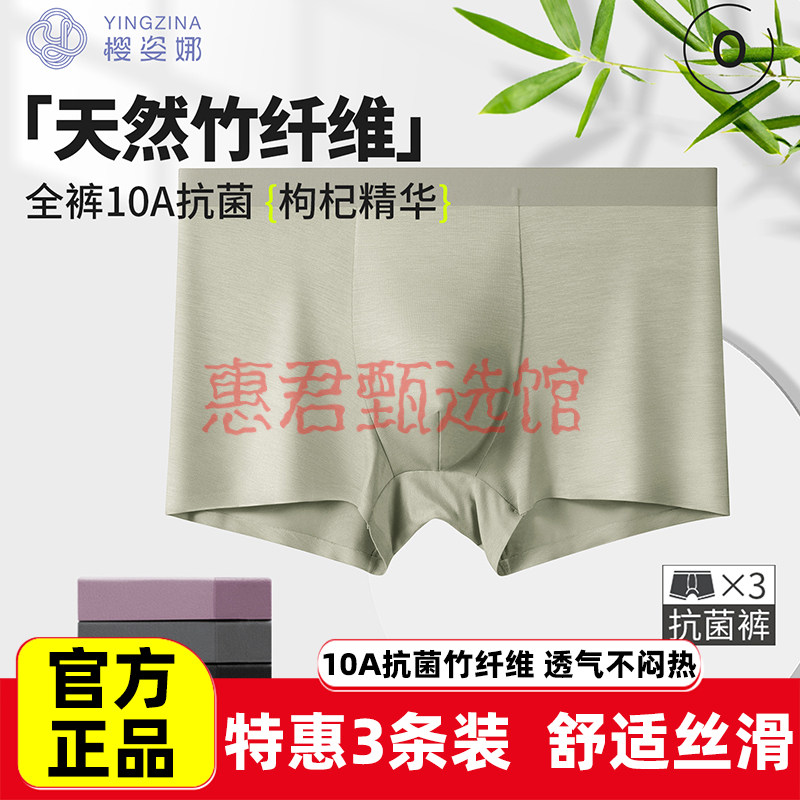 樱姿娜枸杞竹浆10A抗菌男士内裤 抗菌抑味 透气 穿着清爽不闷热