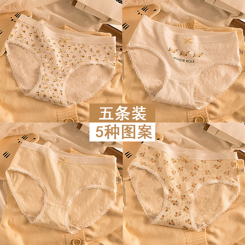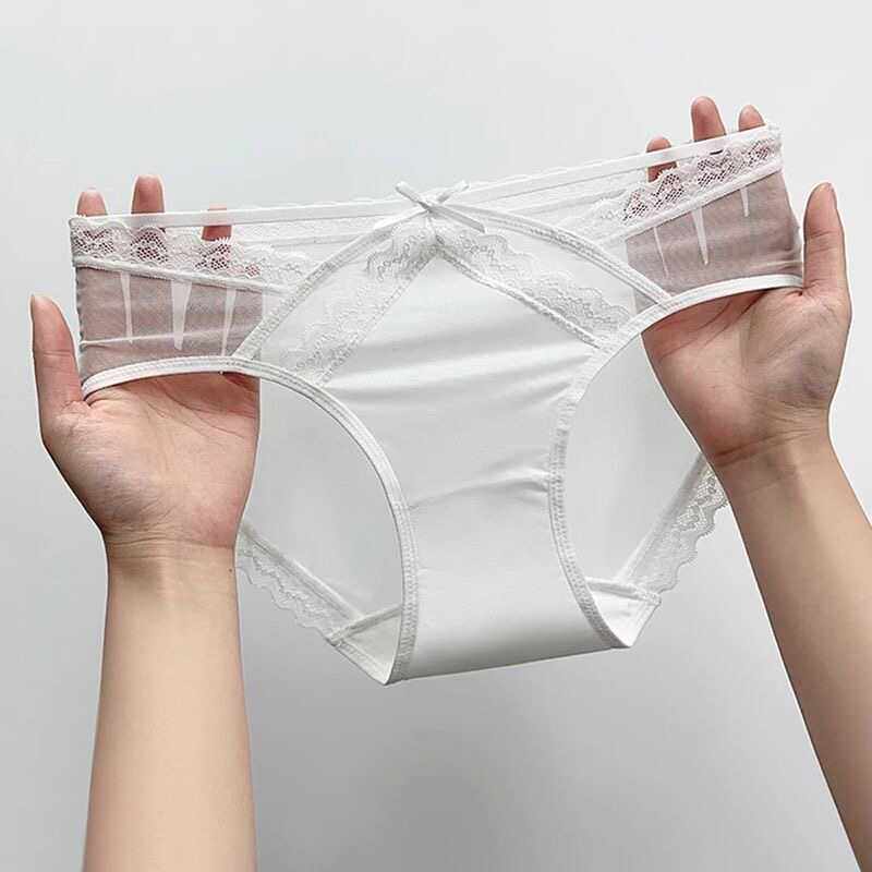 甜美温柔蕾丝搭配蝴蝶结中腰内裤女奶油风轻柔舒适透气少女三角裤