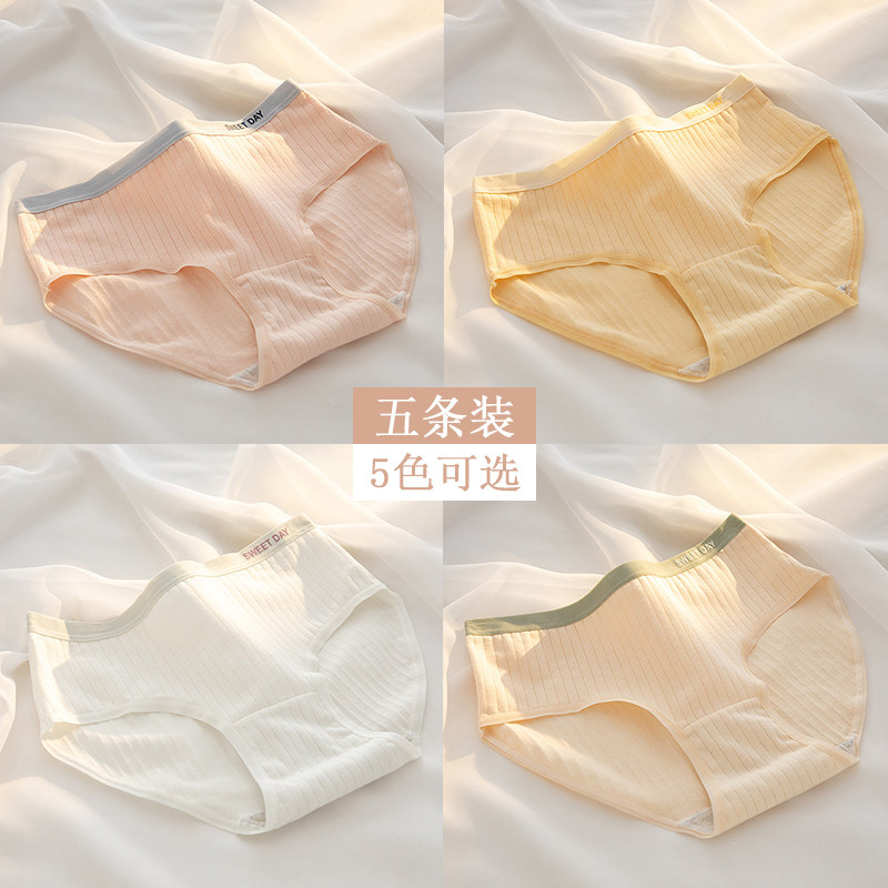 撞色款简约字母条纹中腰内裤女轻柔舒适透气纯棉内裆少女生三角裤