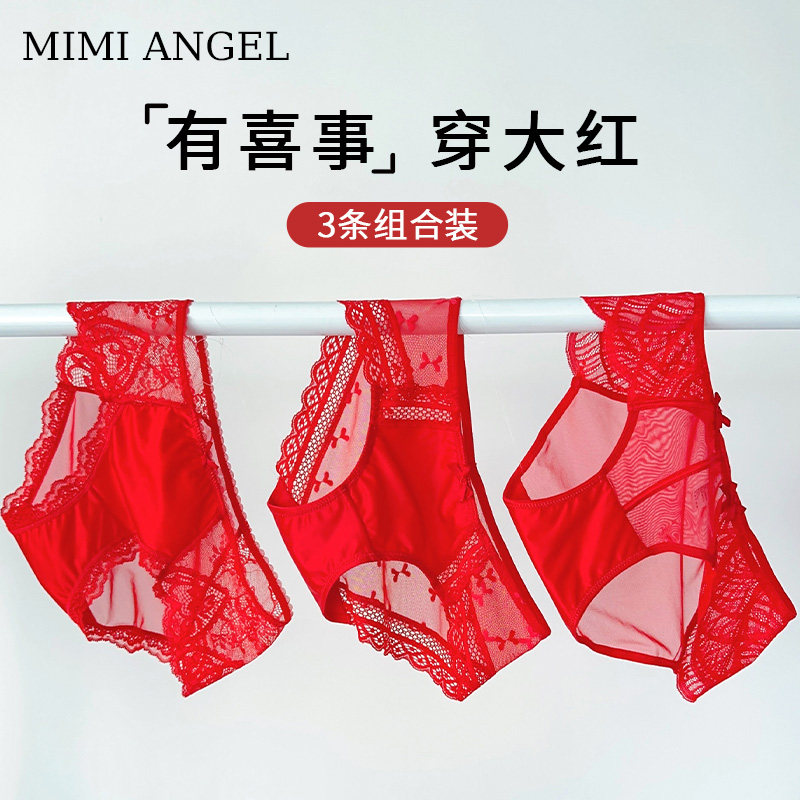 内裤结婚红色蕾丝性感中腰纯棉裆大红色本命年属马女2026新款薄款