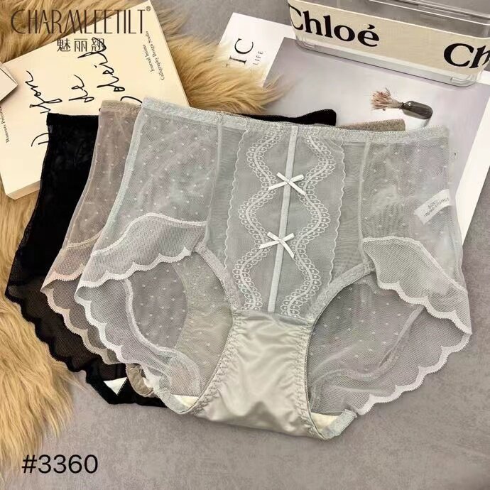新款高腰浪漫提花女士内裤纯欲风浪漫半透网纱拼接蕾丝三角裤