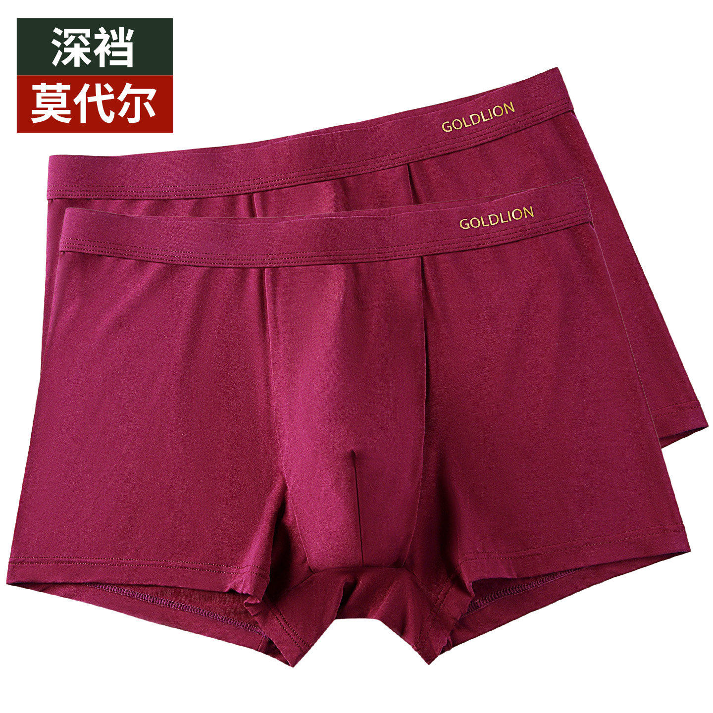 金利来2条装深暗红色深裆平角男内裤 酒红色本命年莫代尔包腰鸿运