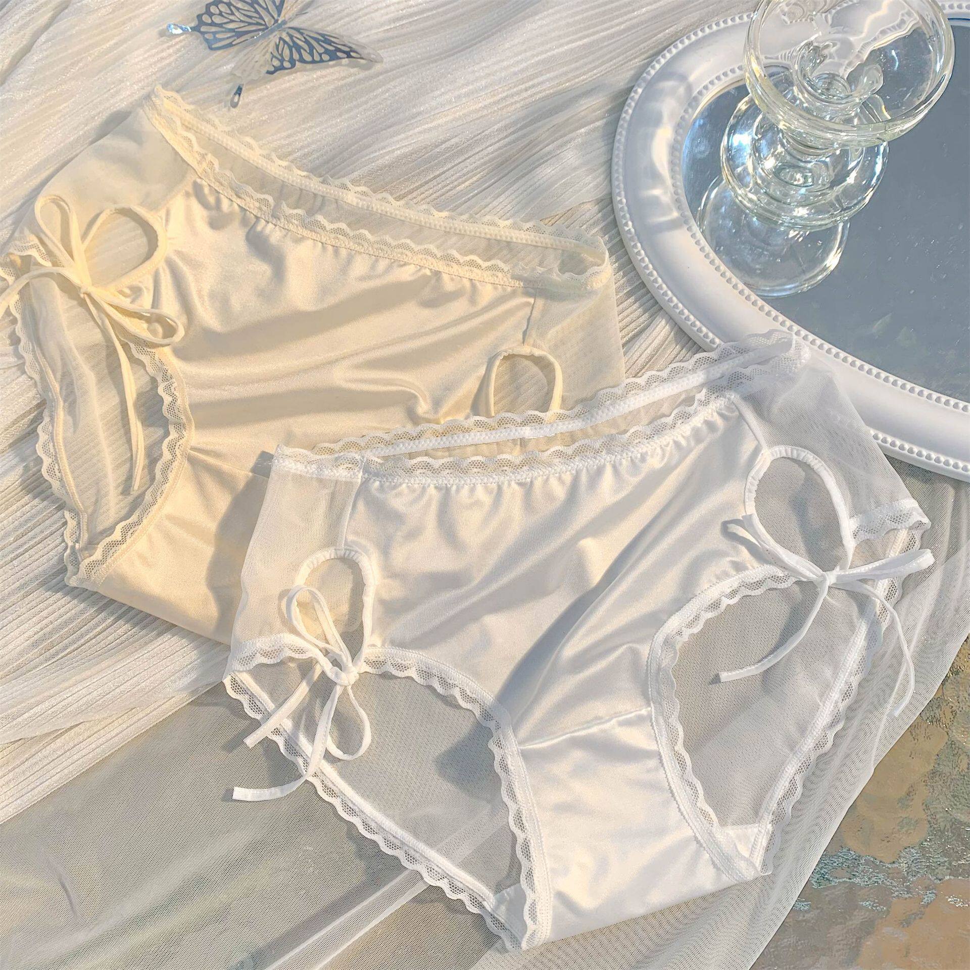 新款轻奢悸动心跳~法式缎面纯欲女士镂空蕾丝绑带内裤女性感