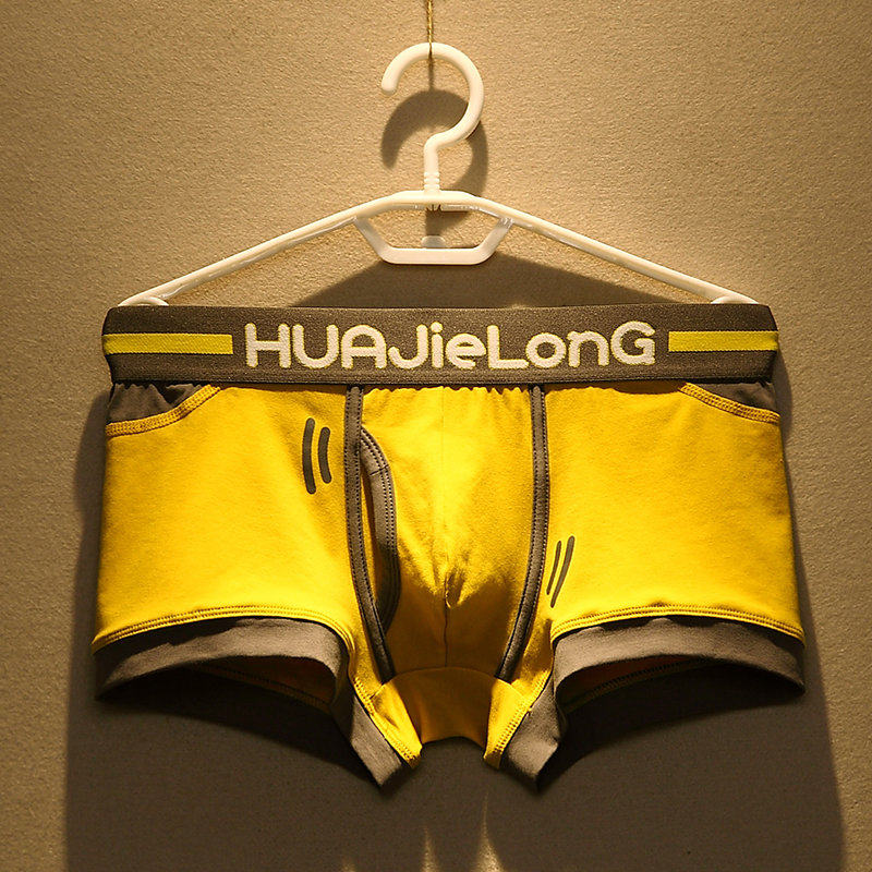 黑日美撒服装旗舰纯色纹理男士内裤简约中腰男大码透气男士平角裤