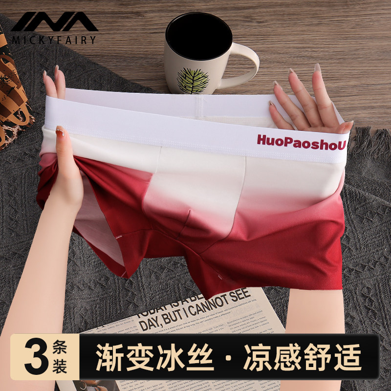 男士内裤男生冰丝渐变无痕运动平角裤男式薄款透气男款四角短裤衩