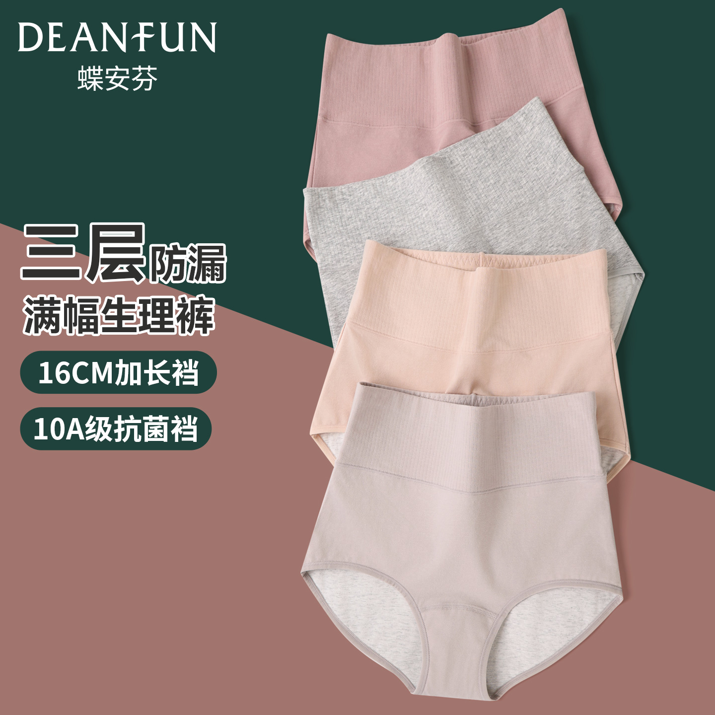 蝶安芬生理内裤女士纯棉抗菌加长裆大姨妈月经期加宽防漏卫生短裤