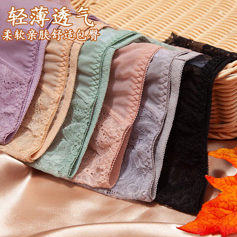 维多利亚性感法式蕾丝缎面拼接网纱内裤女轻薄透气包臀无痕三角裤