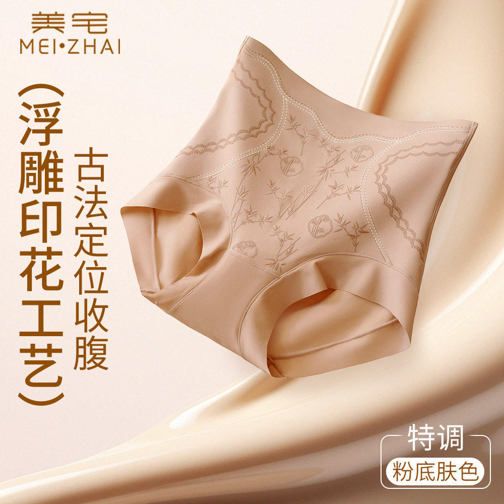 美宅内裤女高腰收腹浮雕印花10A抑菌蚕丝裆无痕全包臀女士三角a5