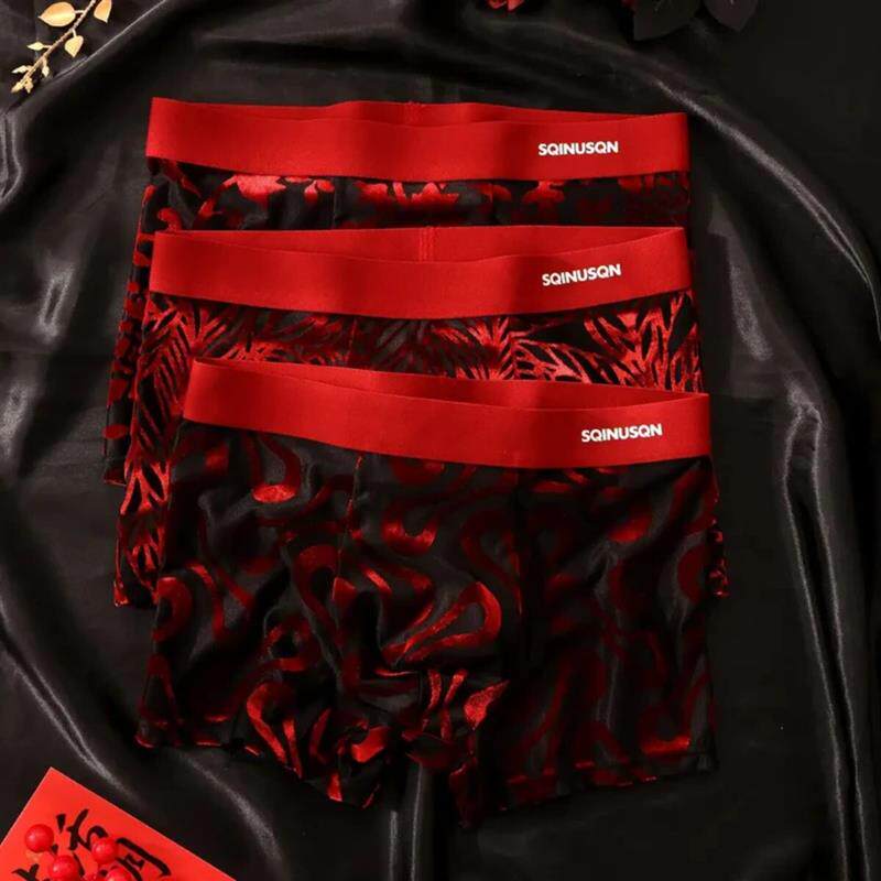 文锦儿甑选市集内裤男士本命年四角裤衩酒红丝绒冰丝底裤短裤头