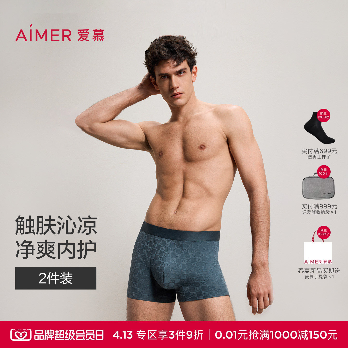 【沁凉肌理两件包】爱慕先生含莫代尔内裤创意印花平角裤2026春夏