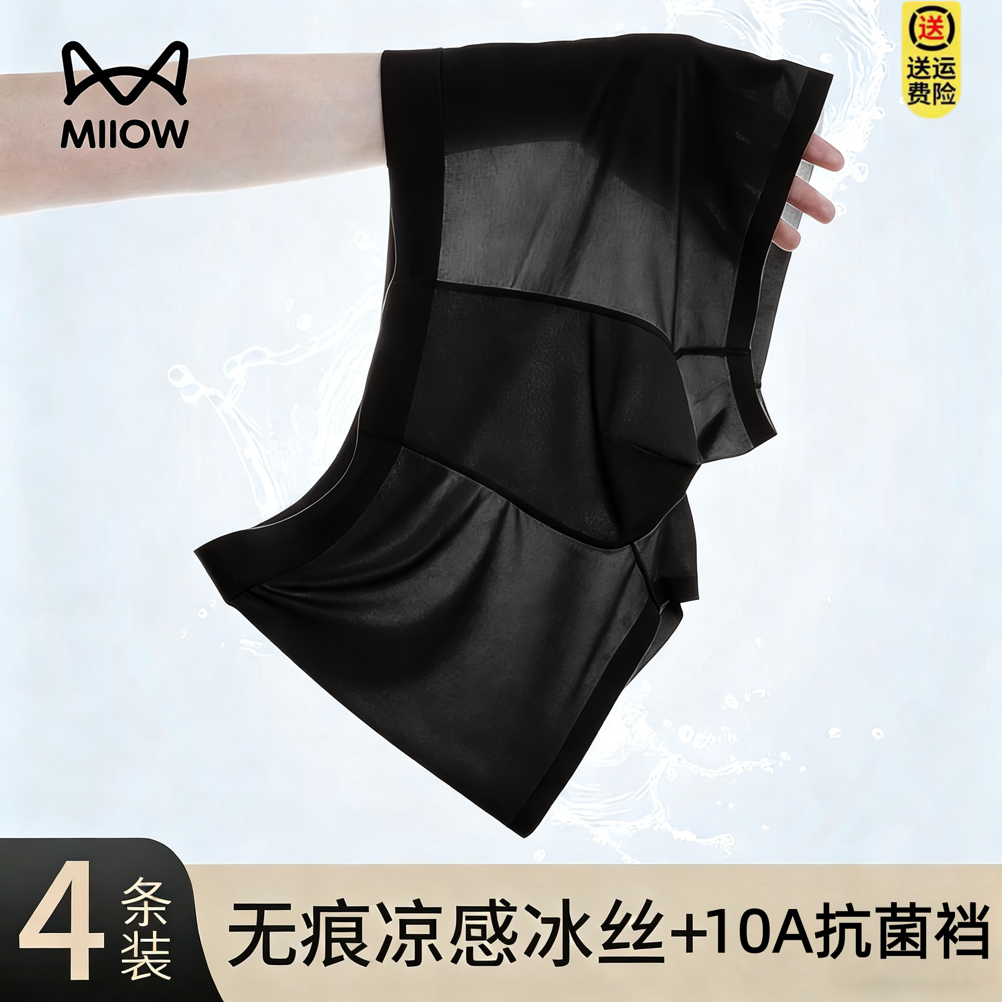 猫人男士内裤黑色无痕夏季冰丝透气速干抗菌凉感大码宽松四角短裤