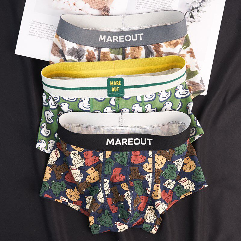 3条男士内裤男生纯棉平角短裤衩个性潮流透气U囊袋卡通青年四角裤