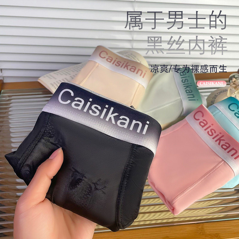 【男人的黑丝】新春夏冰丝内裤男士2026青年男生透气裸睡平角短裤