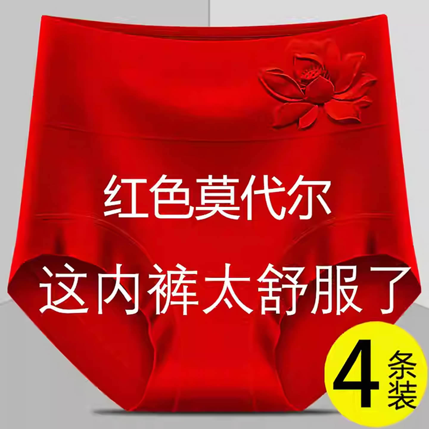 女士大码胖mm内裤本命年2026新款红色收腹舒适透气妈妈三角裤