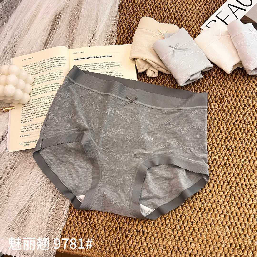 魅丽翘9781莫代尔中腰内裤女100%纯棉内裆少女透气包臀三角裤头