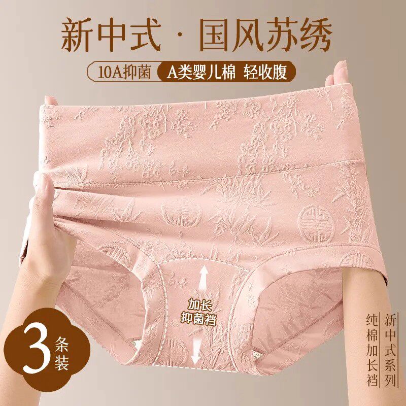 新中式婴儿棉A类棉抑菌高腰透气苏绣塑形提臀收腹加大码女士内裤
