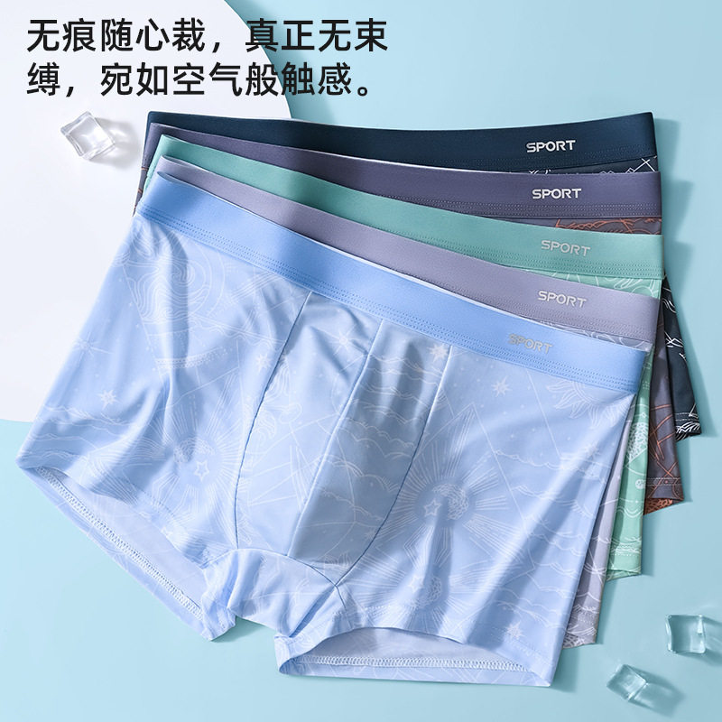 男士内裤冰丝透气大码夏季薄款青少年男生速干凉感四角平角短裤头