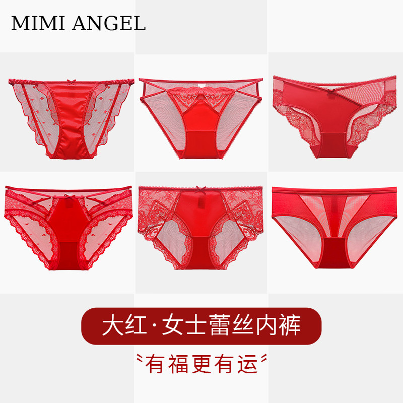 红色内裤女蕾丝性感红内裤结婚喜庆大红本命年内裤女马年新年裤头
