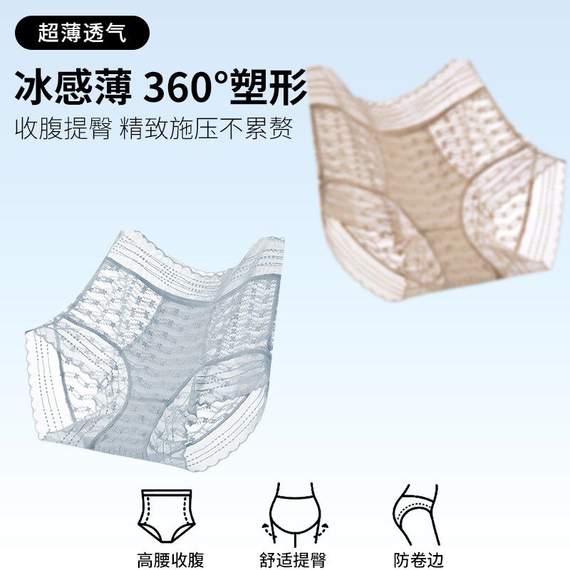 蕾丝性感高腰收腹内裤女纯棉全棉裆无痕提臀抑菌档短裤夏季薄款