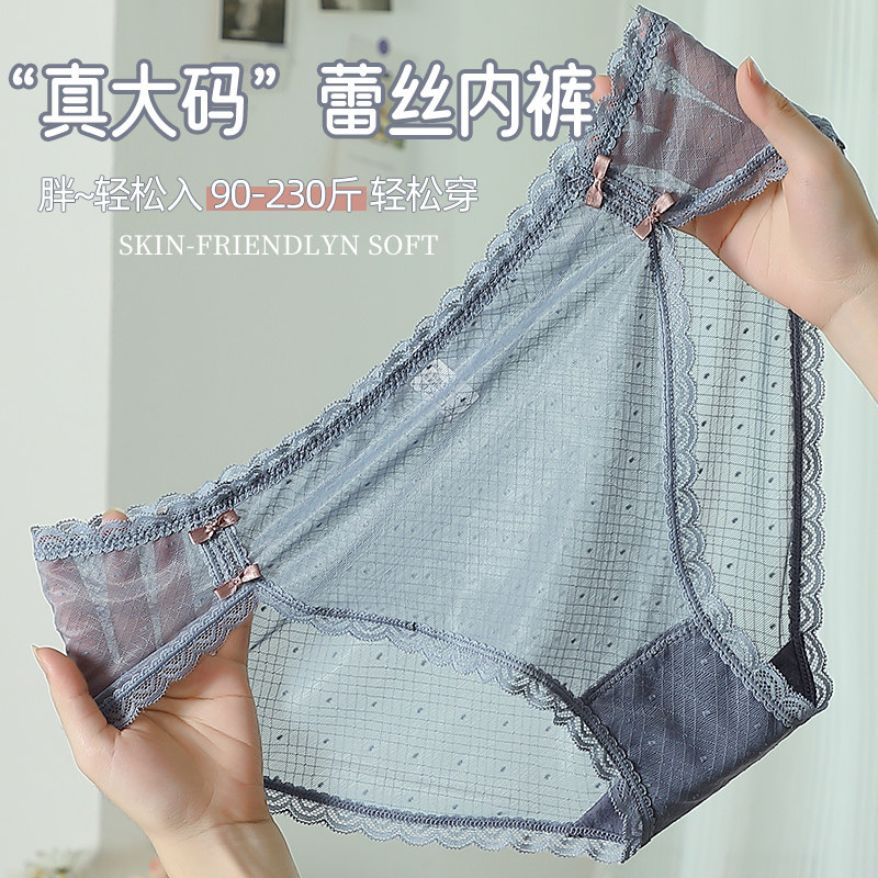 纯欲内裤女大码性感新款蕾丝女士低腰短裤200斤胖mm透明网纱薄款