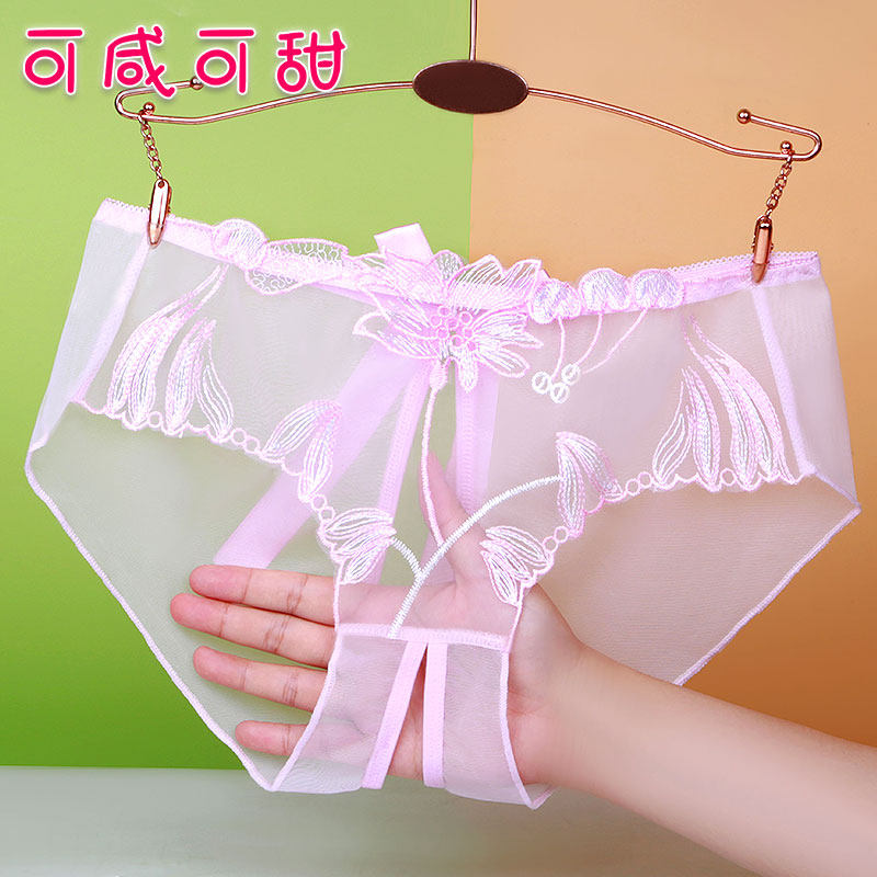 3条装爆款冰丝蕾丝丁字裤女无痕抗菌不夹裆性感纯欲风内裤