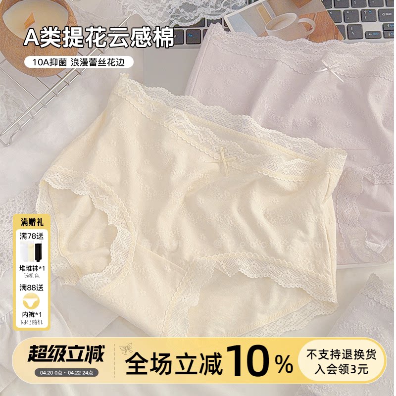 「茶香如故」法式浪漫绝美高颜值A类内裤女士蕾丝纯棉裆10A抑菌短
