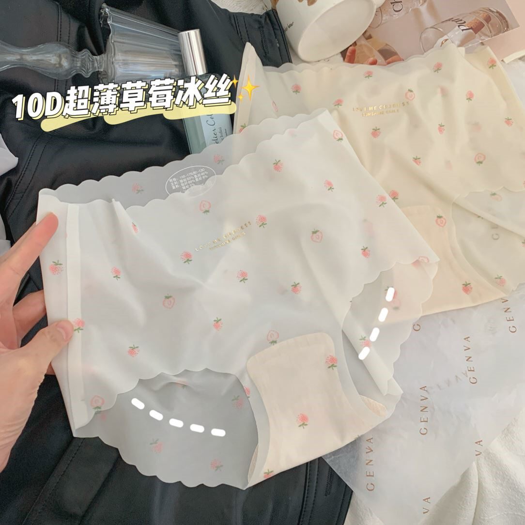 【小莓椰】内裤女无痕草莓冰丝少女薄款速干纯棉裆中腰抗菌三角裤